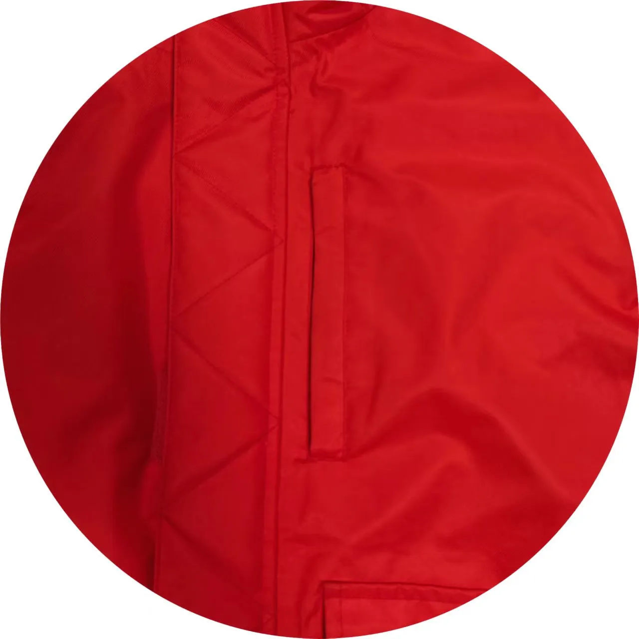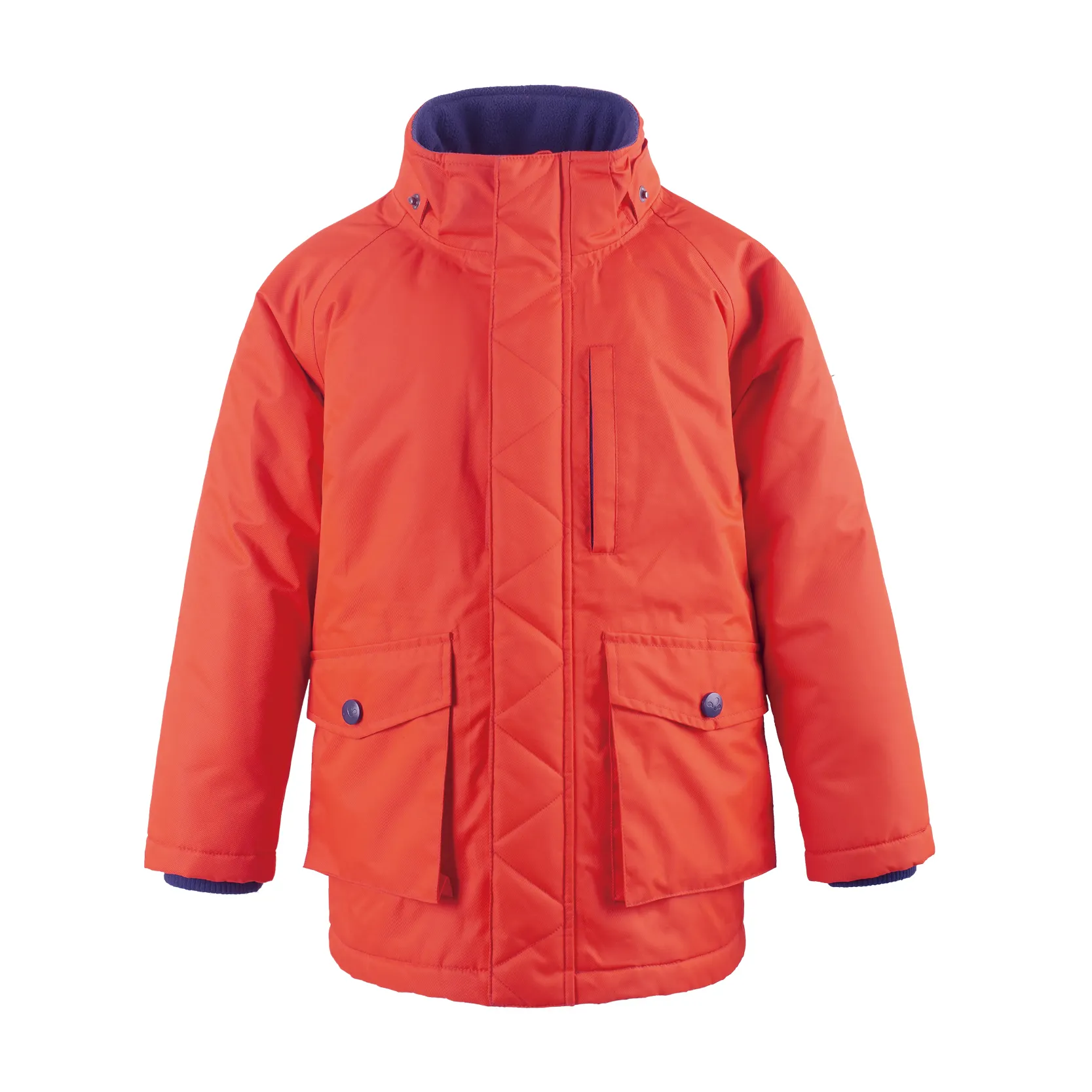 The material of the coat is 100% polyester, both for the fabric and the lining. The use of polyester makes this garment more waterproof and breathable, making this coat suitable for various weather conditions. It is also lightweight, which ensures that children can move freely and comfortably while wearing it.