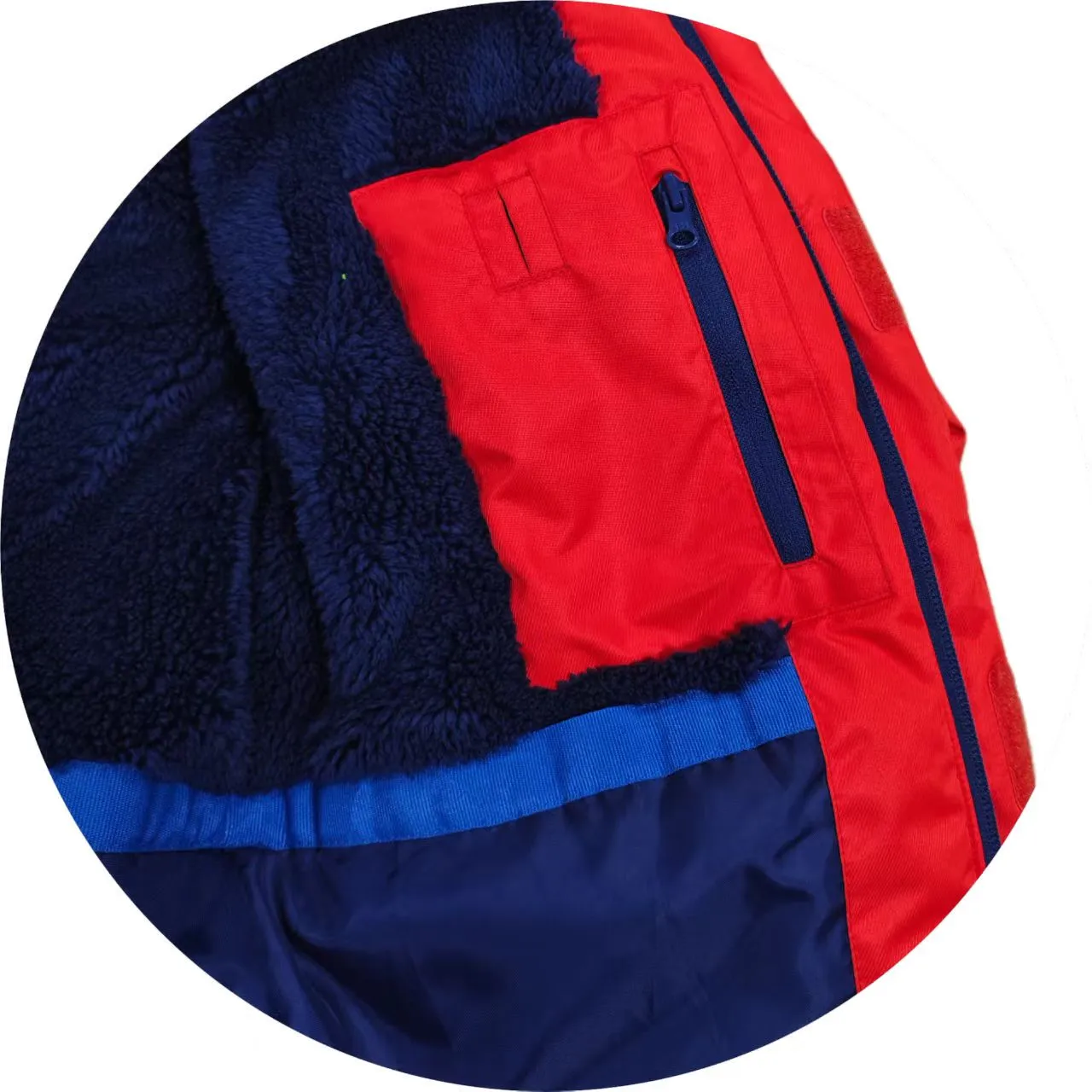 The design of the coat is practical and child - friendly. The interior of the coat is designed with fluff, making it more comfortable and warm for children to wear. There is also a small side pocket inside. The cuffs adopt a double-layer ribbed design, which can better keep warm and prevent the loss of body heat. The buttons and zippers are easy to manipulate, allowing children to dress themselves with minimal assistance. The cuffs and hem are well - stitched to prevent fraying and to keep the cold out.