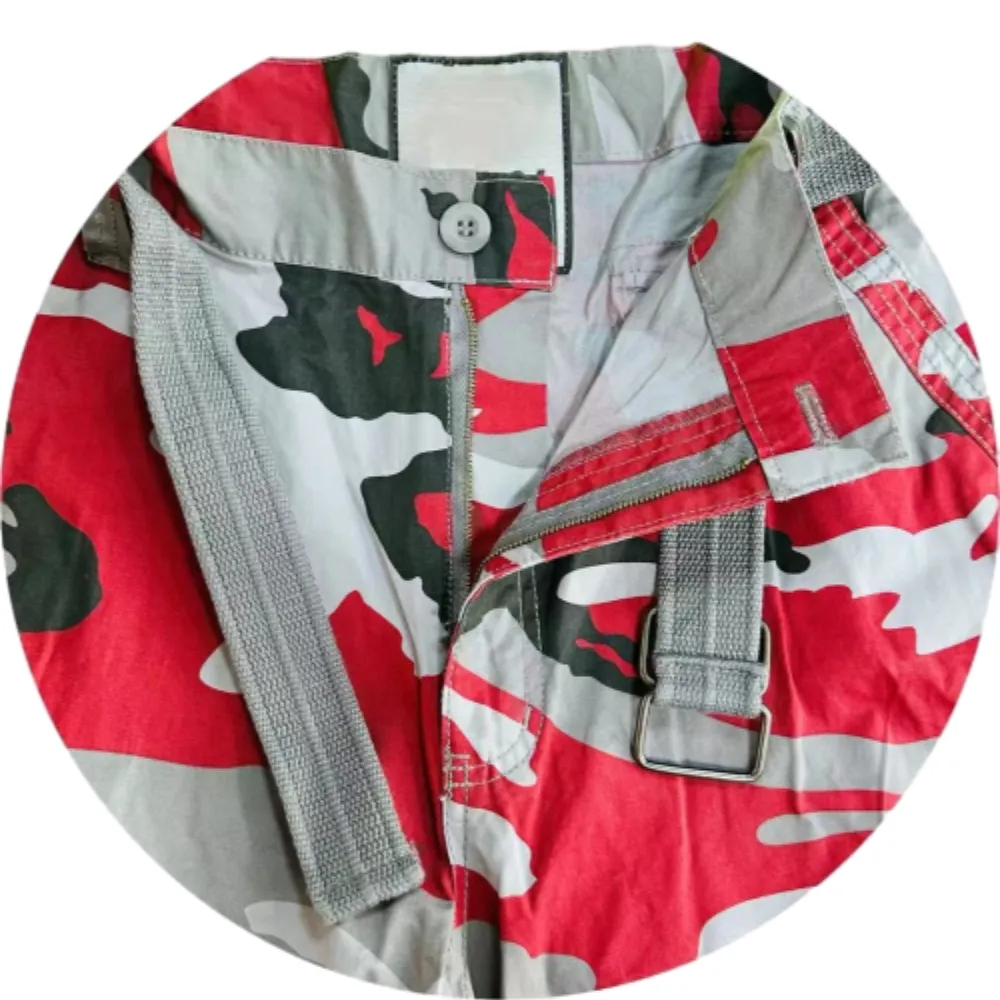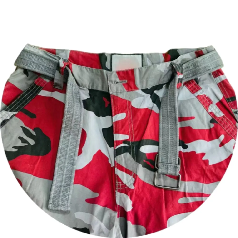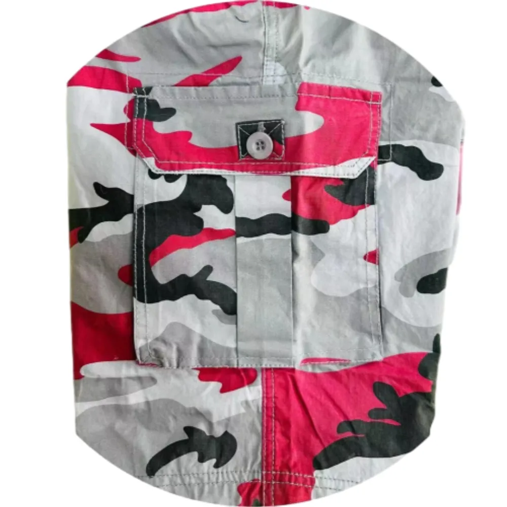 These shorts feature a striking camouflage pattern with a unique blend of many colors. The camouflage design gives them a trendy and modern look, making them stand out among ordinary shorts. This pattern is not only fashionable but also adds a sense of adventure and boldness to the wearer's style.