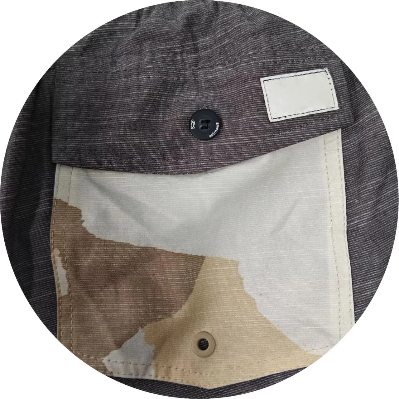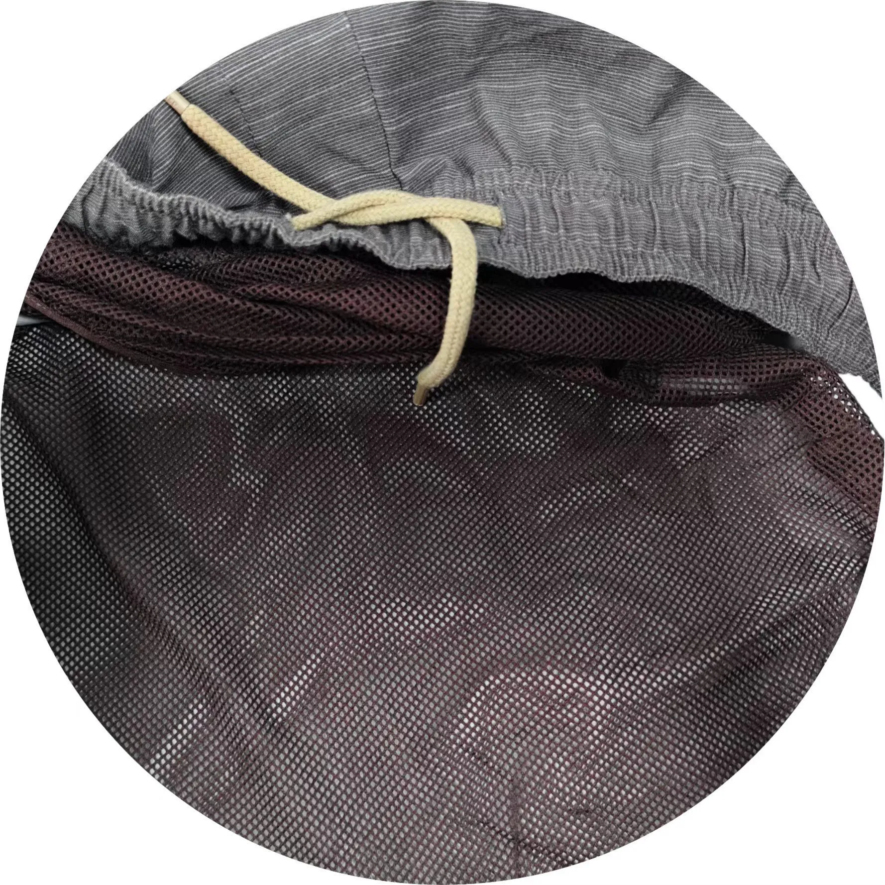 The polyester - cotton - elastane blend is durable, soft, and stretchy. Mesh lining keeps me cool. Drawstring fits well, pockets are handy. Stylish two - tone look. Perfect for summer!
