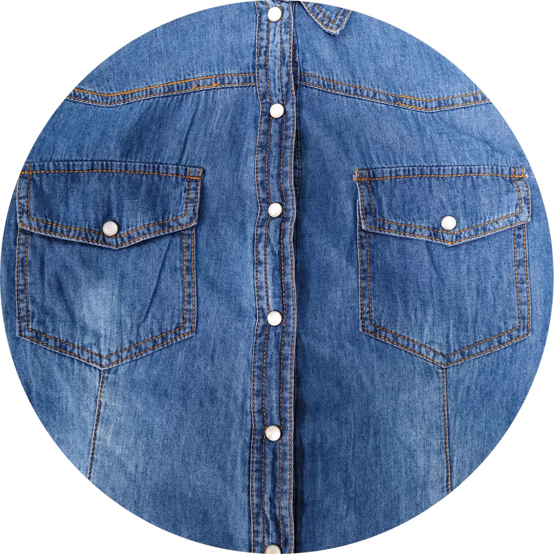 This women’s classic denim button - down shirt, inspired by cowboy attire, blends timeless style and comfort. Made of 100% cotton, the denim - blue piece suits casual outings, themed events, or work, adding charm to any wardrobe.